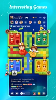 So why wait? Download Play Ludo Together now and start playing and chatting with your friends in a whole new way. With real-time voice communication and a variety of chat room options, this app is perfect for anyone looking to have a good time with their friends. And with Wafa's commitment to creating a positive and inclusive community, you can feel good about using this app and connecting with others. So what are you waiting for? Let's play Ludo together!