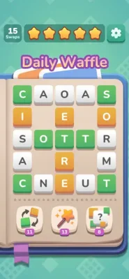 Waffle Word Puzzle is a word game that challenges players to solve a waffle grid by unjumbling the letters and revealing six hidden words. The catch? You only have 15 moves to do it! Each move counts, so you must choose wisely. But don't worry, every waffle can be cracked open with a minimum of 10 moves. Can you outwit the waffle and earn those coveted stars?