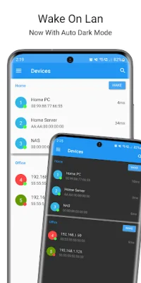 The app is capable of automatically refreshing the online status of your devices using both ports and ping. It also supports Wake On Lan (WoL) and Wake On Wan (WoW). For WoW, you simply need to set the broadcast address to be the remote IP address of the device. However, for devices connected via WiFi, WOL may not work as it is not supported by many WiFi cards. Some devices, like laptops, may not support WOL at all or only work when in sleep mode or powered off.