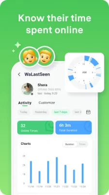 For parents concerned about their children's WhatsApp usage, WaLastseen offers a "Tag" feature that allows them to know the time spent and times at a specified time, such as during sleep time. However, it's important to note that if a loved one is in an invisible state, WaLastseen will not be able to check their status.