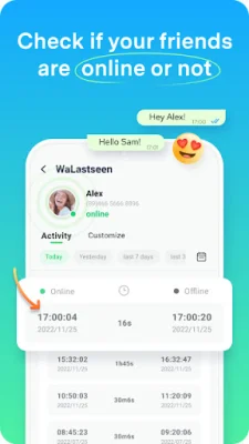 Another useful feature of WaLastseen is the ability to compare the online status of different accounts. This allows users to see detailed information about the online duration and time period of two accounts, making it easier to monitor and manage their contacts' WhatsApp usage. The app also boasts smooth use, with no delays in receiving notifications when a contact logs in or out. Users can even analyze data from any time in the past, giving them a comprehensive view of their contacts' online activity.