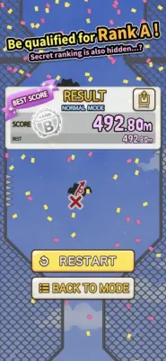 There are three game modes to choose from. In Normal Mode, you must jump as high as possible. In Hard Mode, the challenge is even greater as the levels become more difficult. To unlock Hard Mode, you must first complete 500m in Normal Mode. The third mode is 100m Time Attack, where you must jump as fast as possible. This mode is only available once you have reached a height of over 100m in the other modes.