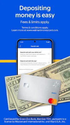 ATM access is only available with an activated and personalized card, and additional fees may apply. For more information, users can visit the Walmart MoneyCard website. It is also important to review the technology privacy statement, as Walmart is not a bank and the card is issued by Green Dot Bank, Member FDIC, under license from Visa and Mastercard.