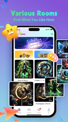 The CHAT application allows users to create their own virtual room and connect with new friends through voice communication. Unlike other social media platforms, there is no pressure to show your face, allowing users to express themselves freely. Users can discuss a variety of topics, including food, sports, fashion, and more.