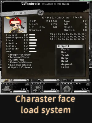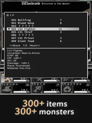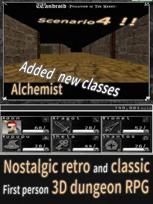 Old Wandroid#4 has been revamped with a new and improved Wandroid#8 user interface and system. While some aspects of the game may be different from its predecessor, it still maintains its 3D dungeon RPG style with a retro and classic screen design and UI.