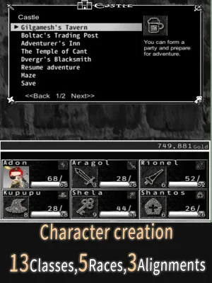 For easier navigation, players can use the "map scroll" sold at the store or the magic of "Mapper" learned by wizards to view an auto-generated map of the dungeon. The game also supports gamepad operation through a Bluetooth connection.
