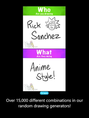 One of the main features of our app is our random drawing generators. We have over 100,000 different combinations currently available, with more updates constantly being added. This means that artists will never run out of inspiration and can continue to challenge themselves with new and unique drawing prompts every day.