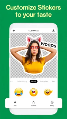 The app also offers the option to customize your stickers with emoji, either from the app's collection or by importing your own from your sticker packs. You can even cartoonify your stickers by uploading a photo and selecting a cartoon effect, creating eye-catching stickers that will surprise your friends on WhatsApp or iMessage.