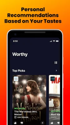 Watchworthy is a personalized TV recommendation application that helps you discover new shows and movies to watch based on your preferences. It works by allowing you to select the streaming TV services you subscribe to, such as Hulu, Amazon Prime Video, Netflix, HBO Max, Disney+, and more. Please note that paid subscriptions to these services are required as Watchworthy does not support illegal streaming or downloading of copyrighted content. To get started, you simply need to rate popular TV shows to build your personal taste profile. This allows the app to understand what you like and don't like to watch. Based on this information, Watchworthy will curate recommendations just for you. These recommendations come with a "Worthy" score, which is based on your TV show preferences and taste profile. The higher the score, the more likely you are to enjoy the show. The more shows you rate, the better your recommendations become. One of the key features of Watchworthy is its ability to help you discover new shows. You can browse recommendations by genre, streaming service, category, or even your current mood. This makes it easy to find something to watch that fits your interests and preferences. Additionally, you can create multiple Watchlists and customize them to fit the way you watch TV. This allows you to consolidate queues across your various streaming platforms and even collaborate on them with friends and family. If you're having trouble deciding what to watch, Watchworthy can also match you to the perfect show. Simply tell the app some of your favorite TV shows and it will find a match based on your preferences. And to keep you up-to-date with the latest releases and trends, the app has an improved Home screen that displays new releases, recent premieres, and what's trending. Watchworthy has received recognition from various media outlets, including BuzzFeed, Elite Daily, Pop-Culturalist, and VideoNuze. It has also been nominated for two Webby Awards in the categories of Mobile User Experience and Entertainment App. If you have any questions about the app, you can email the Watchworthy team at [email protected]. In conclusion, if you're looking for a comprehensive and personalized streaming guide, Watchworthy is the perfect app for you. Download it today and start your next binge-watch! Just remember that paid subscriptions to the appropriate services are required, as the app does not support illegal streaming or downloading of copyrighted content.