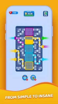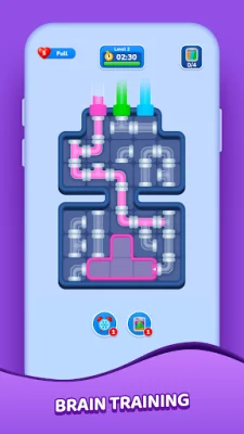 Water Flow Jam is a fun and challenging puzzle game that requires players to rotate pipes in order to connect the flow of colorful liquids and guide them through the correct path. The game also introduces additional challenges such as managing multiple routes at the same time and filling target tanks to solve each level. What sets Water Flow Jam apart from other pipe puzzles is its dynamic gameplay. As players progress through the levels, they will encounter moving pipes that slide into the puzzle in real time. This adds an extra layer of strategy and requires players to think ahead and adapt to the changing puzzle. The game offers a variety of puzzles to keep players engaged. In addition to managing multiple liquid colors, players will also have to deal with additional tanks that affect the flow and pipes that appear or move during the level. With a wide range of creative and challenging levels, players will never get bored. Water Flow Jam also boasts clean and colorful visuals, smooth and intuitive controls, and increasing difficulty with smart mechanics. The quick levels are easy to start but hard to master, providing a satisfying feeling when everything flows perfectly. If you're a fan of classic plumber puzzles with a fresh twist, Water Flow Jam is the perfect game for you. With its clever mechanics and endless flow-based challenges, it will keep you engaged and entertained for hours on end. So why not give it a try and see if you can master the flow?