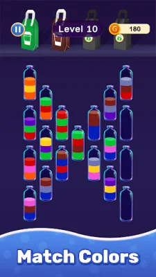 Water Hue - Water Sort Puzzle is a free puzzle game that offers a calming and satisfying experience. The game features gentle ASMR water sounds and clean visuals, making it perfect for slow and mindful sorting play. In this addictive world of water sorting, players will encounter countless puzzles filled with vibrant liquid colors and transparent bottles. The goal is to use logic, strategy, and patience to sort and match the colored water correctly, bringing a sense of calm, focus, and satisfaction with every successful move. To play Water Hue, players must pour water from one bottle to another by tapping on the bottles. The key to success is to only pour when the colors match, making for a clean and organized sorting process. It's important to think carefully before making a move to avoid blocking progress. Extra bottles are available to give players more space to strategize, and the ultimate goal is to pack the filled bottles and clear all bags to complete the puzzle. There are hundreds of levels in Water Hue, each with a smooth difficulty progression. The game features beautiful visuals and clean bottle designs, along with soothing ASMR water sounds for a truly relaxing experience. There are no timers or pressure, allowing players to enjoy the peaceful vibes of the game. Unexpected twists and special sorting rules keep each level fresh and challenging, while the addictive color sort mechanics provide endless satisfaction. Water Hue is not just a sorting game, but a relaxing ritual. Players can watch the colors flow, enjoy every pour, and let their minds slow down as they master the art of water sorting. Whether you're a fan of classic water sort puzzles, peaceful pouring games, or chill and relaxing games with ASMR-style feedback, Water Hue offers the perfect color journey. It's the ideal game for short breaks, winding down, or stress relief. Download Water Hue now for free and experience the joy of sorting, the calm of flowing water, and the beauty of perfectly organized colors. The game also offers a privacy policy and terms of service for players to review. So why wait? Start your relaxing water sorting journey today with Water Hue.