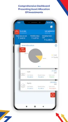 The app also offers a comprehensive dashboard that presents the asset allocation of investments, allowing users to see how their investments are distributed across different asset classes. This can help users make adjustments to their portfolio to achieve a more balanced and diversified investment strategy.