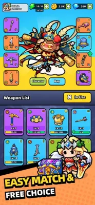 The gameplay of Weapon Master is simple and accessible, with automated combat that allows you to focus on managing your backpack. Whether it's weapons or items, just throw them into your backpack and they'll automatically trigger during combat. This makes the game easy to pick up and play.