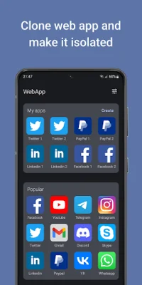 To get started with our webapp builder, simply enter the URL of the website you want to turn into a web widget and tap "Create." The PWA app will be automatically generated with an icon that you can add to your home screen. From there, you can launch the app and start browsing with private internet access. You can create as many sesame shortcut lite apps as you want for free, and even clone apps by creating multiple accounts of the same website widget.