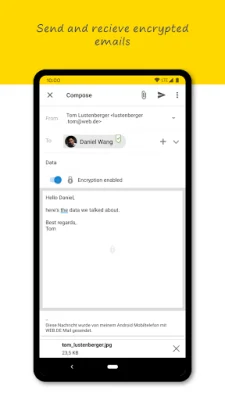 In addition, WEB.DE Mail allows you to send and receive encrypted mails, ensuring the privacy and security of your communications. You also have the option to synchronize your GMX or WEB.DE address book with the app.