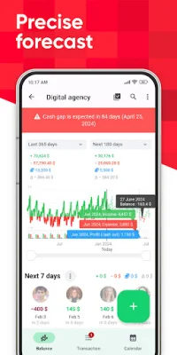 Cash Flow also allows users to create both one-time and recurring transactions, making it easier to plan and budget for future expenses. The app's forecast feature uses the data entered by the user to predict the future balance, providing valuable insights for financial planning.