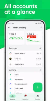 The app offers various features to help businesses manage their finances effectively. Users can create multiple accounts, add different currencies, and categorize expenses and income for better organization. This allows for a more accurate overview of the financial status of different projects.
