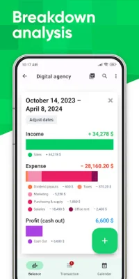 Cash Flow is an essential tool for businesses to forecast their financial future and make informed decisions. With its user-friendly interface, the app provides a visual representation of all income and expenses transactions, allowing users to easily track their financial progress.