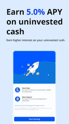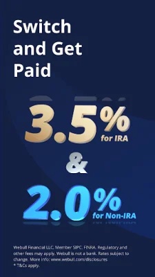 Webull also offers options for retirement investing, allowing users to transfer their IRA and receive a 3.5% bonus on transfers and new contributions. Users can also earn 5.00% APY on their free cash with no fees or minimums, all FDIC insured. The platform also allows for commission-free trading and investing in stocks, ETFs, and options within the same IRA.