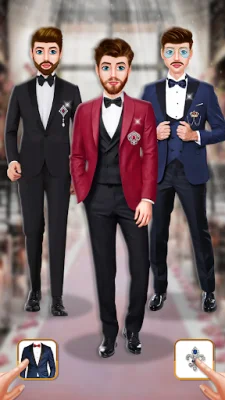 After the bride is ready, it's time to get the groom ready for the royal wedding. Take him to the spa salon and give him a facial treatment to make him shine like a star. Then, choose the perfect outfit for him, along with his beard style, hairstyle, goggles, and a matching brooch. With your help, the groom will be ready to say "I do" to his bride.