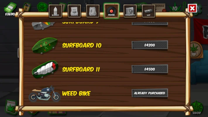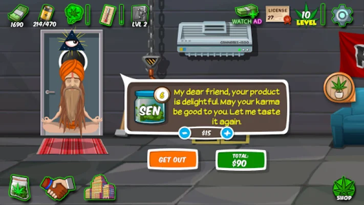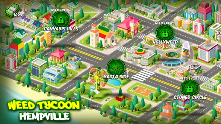 Kush Tycoon: Grow Best Buds in Hempville is a fun and addictive game where you can start your own weed growing career in the Rasta Side and work your way up to becoming the best pot dealer in the city. You will explore new territories, compete with other weed tycoons, and expand your pot empire to locations like Cannabis Hills, Hollyweed, and Stoned Circle. In this cannabis growing game, you will learn the ins and outs of plant growing, grooming, and cultivating your pot empire with fertilizers, water supply, and essential lighting. You can choose from a variety of pot strains like Sour Diesel, Purple Haze, Lemon Skunk, Bubble Gum, and Sensi Star, and as your cannabis farm provides you with more money, you can buy better seeds and increase your income. To boost your cannabis harvest, you can use the most effective equipment like TLED lamps, vent systems, smart pots, and water pumps. You will also need to multitask and make sure your pot licenses are valid while controlling the smell to avoid getting busted by the police. As you progress through the game, you can sell your weed farm harvest to locals and make deals with potential weed friends. As you become a successful weed growing mogul, you can acquire bigger rooms for your bud farm and even get wholesale cannabis orders from places like coffeeshops, hospitals, bakeries, and pharmacies. You can also level up and unlock new places like Cannabis Hills, Hollyweed, and Stoned Circle, and compete with other players on the leaderboards. Kush Tycoon: Grow Best Buds in Hempville is a game that offers a variety of features, including choosing and planting seeds, boosting your harvest with inventory purchases, selling weed to customers, discovering new and efficient weed breeds, making valuable investments, and unlocking new places. You can also connect with other players on the leaderboards and compare your progress with friends. So what are you waiting for? Download the game now and become the ultimate weed growing tycoon in Hempville!