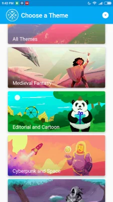 We have an exciting application that offers 12 unique themes for you to explore and create art from. These themes include Medieval Fantasy, Space, Horror, Western, Llama, and many more. With millions of cool and sometimes weird suggestions, you'll never have an artblock again!