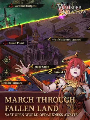 Explore a vast open world of darkness, from the Magma Temple to the Boreal Furnace, and encounter hundreds of heroes along the way. As the savior, players must fight alongside these heroes to save the day. Whisper of Shadow offers a plethora of artistic and astonishing scenes and maps, making it a must-join for all adventure seekers.