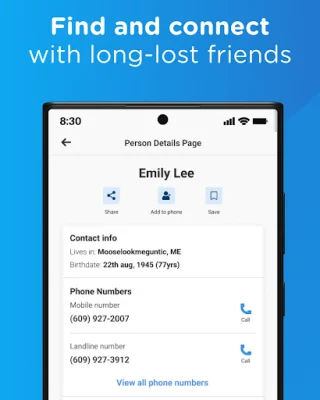 One of the main uses of the Whitepages app is to find and reconnect with people. Users can search for friends and family by name, phone number, address, or email to access their contact information. This feature is helpful for those who have lost touch with someone or need to update their contact list.