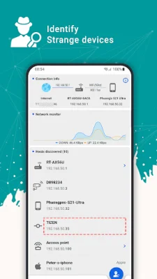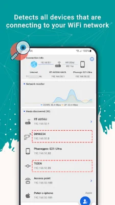 Monitoring your network's health is also made easy with Who Uses My WiFi - Net Scanner. You can track real-time network usage, ping speeds, and port availability to ensure that your network is performing at its best. This can help you identify any potential issues and troubleshoot them quickly.