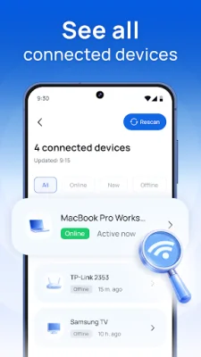 With just a few taps, you can scan your network and see every device connected to it. No more digging through confusing router menus, as this app provides easy-to-understand views and insights. And if you notice any suspicious activity, simply switch to WiFi Thief Detector mode and investigate immediately.