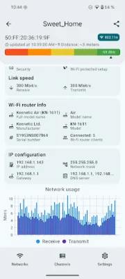 In addition to monitoring signal strength and determining channel load, the wifi meter also displays detailed information about networks. This includes security parameters, frequency, connection speed, and even the manufacturer and brand of the router. This information can be useful for troubleshooting connection issues and optimizing network settings.