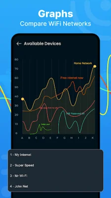 Uncover WiFi secrets and maximize security with this powerful tool. With the WiFi Analyzer Free app, you can easily speed test your WiFi connection and compare it to others. You can also block data usage on specific apps to control how much data they use. This app also helps you identify who is using your WiFi and find the best channel for your router to make your internet faster. Additionally, you can get detailed information about each WiFi network, including its name, signal strength, channel, and security type. And to top it off, you can choose from a variety of themes to customize the look of the app.