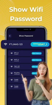 WiFi Analyzer Password Show is a useful application that allows users to easily connect to WiFi networks without the hassle of remembering passwords. With this app, users can view saved WiFi passwords, create WiFi hotspots, and share their internet connection effortlessly. It also provides information on connected devices, displays nearby WiFi networks on a map, and generates a list of available networks in the vicinity. One of the key features of WiFi Analyzer Password Show is the ability to show passwords of saved WiFi networks. This eliminates the frustration of forgetting passwords and allows for easy access to previously connected networks. Additionally, users can create a WiFi hotspot from their device and share their internet connection with others. The app also provides a list of devices currently connected to the WiFi network, allowing users to keep track of who is using their network. This can help with network security and management. The WiFi map feature displays nearby WiFi networks on a map, making it easier to find and connect to the best networks in the area. Another useful feature is the signal strength indicator, which shows the strength of the connected WiFi network. This ensures that users are always connected to the strongest signal for optimal performance. The app also includes a speed test feature, allowing users to test the speed of their WiFi connection and monitor its performance. WiFi Analyzer Password Show also offers a convenient way to share WiFi network details with others through a QR code. Users can generate a QR code for their WiFi network and easily share it with friends, family, or others. The app also allows for quick and easy connectivity by scanning QR codes to connect to WiFi networks, eliminating the need to manually enter passwords. It is important to note that the app requires location and camera permissions for certain features, such as scanning nearby networks and QR codes. However, the app only displays passwords for networks connected using this application, ensuring the security of users' networks. The developers of WiFi Analyzer Password Show value user feedback and are committed to enhancing the app's features and user experience. Users are encouraged to provide feedback, suggestions, and questions to help improve the app. With its user-friendly interface and useful features, WiFi Analyzer Password Show is a must-have for anyone looking for a convenient and secure way to connect to WiFi networks.