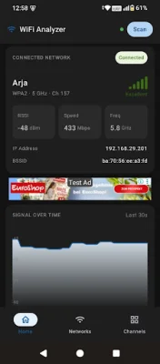 This app is designed to help users improve their WiFi experience by diagnosing and optimizing their WiFi connection. It can assist with issues such as slow internet, weak signal, and network congestion. The app offers real-time WiFi signal strength monitoring, a list of nearby WiFi networks, and a channel analyzer for both 2.4GHz and 5GHz bands. It also provides network details such as SSID, BSSID, frequency, and security, as well as information about the currently connected network. The interface is simple and user-friendly. The WiFi channel analyzer feature allows users to easily detect overlapping networks and channel congestion, helping them choose the least crowded channel for better WiFi speed. The signal strength meter allows users to monitor their WiFi signal in real-time and find the best spot for optimal connectivity. The app also provides network details for nearby networks, including their name, signal strength, frequency, and security type. There are several reasons why users should consider using this app. It can help improve WiFi speed and stability, reduce interference from nearby networks, optimize router placement, and diagnose connection issues. The app also prioritizes user privacy and only requires location permission to scan nearby WiFi networks, which is necessary for its features to function properly. The app does not collect or store user location, track users, or share personal data. This app is compatible with modern Android devices and fully supports the latest WiFi standards. By using WiFi Analyzer – Signal & Channel, users can optimize their WiFi experience and enjoy faster and more stable connections.