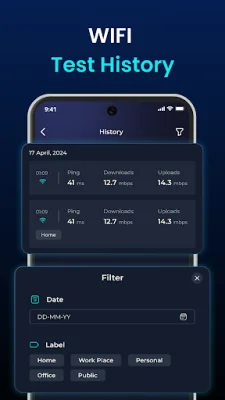 WiFi Analyzer Speed Tester is a mobile application that allows users to analyze and optimize their WiFi network or WiFi hotspot. With just a tap, users can quickly and accurately test their internet speed, measure the strength of their WiFi signal, and explore nearby available WiFi networks. The app also offers features to manage connected devices, connect to free WiFi using QR codes, and transform your phone into a WiFi hotspot. One of the key features of WiFi Analyzer Speed Tester is its ability to transform your phone into a network analyzer or WiFi hotspot. This means that your device can become a reliable WiFi hotspot for any devices around you, whether you're on the go, in a meeting, or at home. The app also offers an internet speed test feature, allowing users to easily check their WiFi speed with just one click. This includes testing ping, download, and upload speeds to determine if the WiFi is strong, normal, or weak. Users can also monitor their data usage and manage connected devices to their personal hotspots. In addition, WiFi Analyzer Speed Tester allows users to check the strength of their WiFi signal, including speed, frequency, and IP address. This ensures uninterrupted live streaming, gaming, and web browsing. The app also helps users find and connect to the best WiFi networks in their neighborhood, eliminating slow and unreliable ones. One of the unique features of WiFi Analyzer Speed Tester is its ability to connect to WiFi networks using QR codes. This eliminates the need to ask for passwords and manually enter them into devices, making WiFi connectivity effortless and convenient. The app is compatible with all Android devices and offers multi-language support for users worldwide. It also allows users to track their WiFi speed history and compare past results to see how their network performance changes. Users can also tag and label devices to keep their network organized. Overall, WiFi Analyzer Speed Tester is a comprehensive and user-friendly app for optimizing WiFi networks and hotspots. With its various features and capabilities, it is a must-have for anyone looking to improve their wireless connection. The app offers auto-renewing subscriptions for yearly or monthly access, making it accessible to all users. Download now and take control of your WiFi connection!