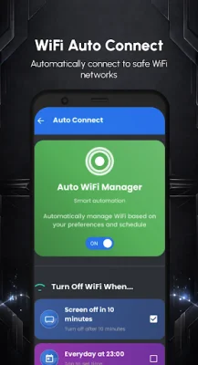 WiFi Auto Connect: WiFi Master is a powerful tool that makes managing your WiFi connections easier than ever. With this app, you can automatically connect to available networks, scan nearby WiFi connections, and analyze signal strength with just a few taps. It's the perfect solution for anyone looking for a reliable and efficient way to manage their wireless connections. Whether you're at home, traveling, or in a public place, WiFi Master helps you find strong networks and connect to WiFi faster. Its smart auto connect feature ensures that your device automatically reconnects to known networks, providing a fast and stable connection. You can also easily switch between networks and select the best one for your needs. The app also includes a WiFi scanner and network finder, allowing you to discover nearby wireless networks and view their signal strength. This helps you identify the strongest and most stable connections, as well as check network security information. With the WiFi analyzer feature, you can improve your network performance by understanding its signal strength, frequency, and potential interference. You can also detect connected devices and manage them accordingly. WiFi Master also offers a built-in internet speed test tool, allowing you to quickly check your download and upload speeds, as well as network latency. This ensures that your connection is fast and stable, no matter where you are. Additionally, the app offers a QR code WiFi connection feature, making it easy to connect to networks without having to type in passwords. Some key features of WiFi Auto Connect: WiFi Master include its auto connect tool, network manager, scanner and finder, analyzer and signal strength monitor, speed test, QR code connection, and device and network information. The app has a simple and user-friendly interface, making it easy for anyone to use. One of the main reasons to choose WiFi Auto Connect: WiFi Master is its ease of use and convenience. It offers fast WiFi network scanning, accurate signal strength analysis, and lightweight and smooth performance. It's a useful tool for managing WiFi connections at home, in the office, or while traveling. It's important to note that this app does not hack, crack, or bypass secured WiFi networks. Its purpose is to help users manage and analyze the WiFi connections available on their devices. The app is regularly updated to provide better performance, improved WiFi scanning accuracy, and enhanced network tools. In conclusion, WiFi Auto Connect: WiFi Master is a must-have app for anyone looking to efficiently manage their WiFi connections. Its powerful features, user-friendly interface, and regular updates make it a top choice for users. Download it now and enjoy smarter WiFi connection management.