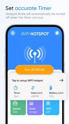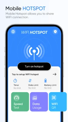 The WiFi Hotspot is a portable app that allows you to easily manage your network based on your preferences. With this app, you can enable and disable WiFi hotspot settings, view your last paired and connected device usage history, and set time, data, and battery limits for your WiFi hotspot usage.