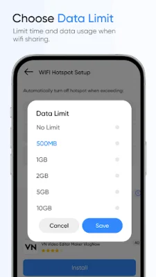 The app also allows you to set battery limits with just one tap. This means that when your device battery reaches the selected percentage limit, your mobile hotspot will automatically stop. This feature helps you conserve battery life and avoid unexpected network usage.