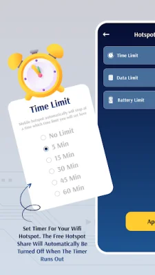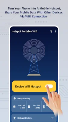 Now you can have full control over your preferred hotspots with the new portable WiFi hotspots app. This app allows you to easily manage your network by setting your own criteria. With just a few clicks, you can share your internet data through a hotspot and enjoy tethering and mobile computing with ease. Gone are the days of struggling with complicated settings to turn on your mobile hotspot and share your phone's internet data. With this phone wifi hotspot app, you can easily turn on your mobile hotspot and share your data with other devices. You can also set time limits, data limits, and battery usage limits for your Wi-Fi hotspot usage, giving you complete control over your network. The app comes with a range of useful features to make managing your hotspots a breeze. You can easily enable or disable your Wi-Fi hotspot, view your hotspot usage history, and set time limits for its usage. You can also set data limits to ensure that connected devices do not exceed your selected data limits. Additionally, you can choose a battery limit for your mobile hotspot, which will automatically turn it off when the limit is reached. The app also provides information about the devices connected to your hotspot, making it easier for you to keep track of your network. With high-speed sharing and free hotspots, you can enjoy seamless internet connectivity on all your devices. And for those who like to customize their settings, the app offers a range of options to personalize your free hotspots. In summary, the portable WiFi hotspots app is a must-have for anyone looking to manage their network with ease. With its user-friendly interface and a range of useful features, you can have complete control over your hotspots and enjoy high-speed sharing with free hotspots. So why wait? Download the app now and experience the convenience of managing your hotspots on your own terms.