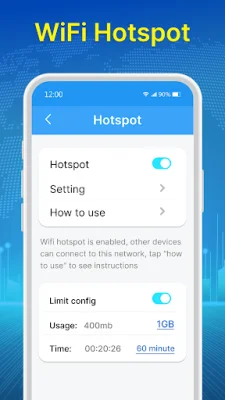 Wifi Hotspot, Personal Hotspot is a mobile application that allows you to turn your smartphone into a wifi hotspot, providing fast and stable internet connection to multiple devices. With just one touch, you can activate wifi mode and create a free hotspot using 3G, 4G, or 5G network. This app is compatible with popular smartphone brands such as Samsung, HTC, Xiaomi, and Huawei, making it accessible to a wide range of users. One of the key features of Wifi Hotspot, Personal Hotspot is its ability to seamlessly share your internet connection with friends and other devices. You can easily control the activation and deactivation of the hotspot with the START and STOP buttons, and keep track of all connected devices through the "List connected devices" feature. The app also includes a built-in speed test feature, allowing you to check the speed of your wifi network. To use Wifi Hotspot, Personal Hotspot, simply open the app and select the hotspot feature. From there, you can configure settings such as data limit, time limit, and battery limit for your hotspot. Once everything is set, press "Start" to activate your free hotspot and start sharing your internet connection with other devices. This app is a great solution for providing internet access to other devices, as it works on Android devices with 2G, 3G, 4G, and 5G networks. It eliminates the need for additional devices and makes it easy to share your internet connection with friends and family. With Wifi Hotspot, Personal Hotspot, you can save time and increase convenience by creating a hotspot with just one click. In conclusion, Wifi Hotspot, Personal Hotspot is a convenient and efficient way to share your internet connection with other devices. It is a must-have app for anyone looking to create a wifi hotspot and provide internet access to multiple devices. Download Wifi Hotspot, Personal Hotspot today and experience the convenience of sharing your internet connection with those around you.