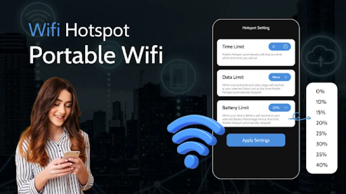 The WiFi Hotspot is a portable app that allows you to easily manage your network based on your preferences. With this app, you can enable and disable WiFi hotspot settings, view your last paired and connected device usage history, and set time, data, and battery limits for your WiFi hotspot usage.
