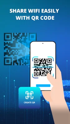 The app is designed to make sharing WiFi easier and more secure. It allows users to turn their mobile data into free WiFi and share it instantly via hotspot. This eliminates the need for typing in passwords and makes the process much quicker. The app also has the ability to generate and scan WiFi QR codes, which can be used to share WiFi with others.