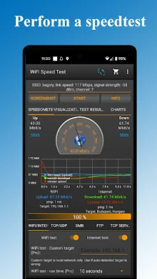 This WiFi and Internet Speed Test tool is a user-friendly app that allows you to easily test and optimize your network. It helps you fix slow internet and troubleshoot any issues that may be affecting your connection. With this app, you can say goodbye to buffering and lag and hello to lightning-fast speeds. The main features of this app include the ability to test the speed of both wireless and wired networks, as well as your router. You can also test the download and upload speed, bandwidth, and save past results automatically. The app displays important information such as IP address, network name, signal strength, and latency. You can easily share your speed test results and even test the speed of FTP servers and Windows shares. It's important to note that this app will only be useful if you have a second phone or computer to use as a server. You can download the server application from the provided link. It's also important to understand that this is not an Internet speed test app, although you can still test your internet speed if desired. This app is primarily for measuring the speed of your local network, so an active internet connection is not required. For more information and helpful links, you can visit the provided documentation and online demo. The demo showcases the usage of the app and provides tips for being original and SEO-oriented. With this WiFi and Internet Speed Test tool, you can easily improve your network's performance and enjoy faster speeds without any hassle.
