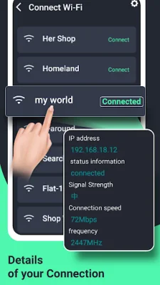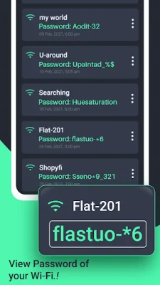 The app is very user-friendly and easy to use. Once you enter the password for a wireless connection, it will be saved in the app's memory and can be easily accessed in the "show password" section. This feature eliminates the need to constantly ask for the wifi password or manually enter it every time you want to connect to a network.