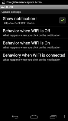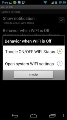 The WIDGET's settings can be customized through the WIFI On Off application settings. This allows you to choose which options are available when clicking on the WIFI status in the notification bar. By personalizing these settings, you can make the WIDGET work best for your specific needs and preferences.