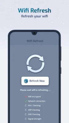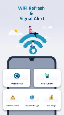 This application offers a variety of features to help improve and monitor your WiFi network and data usage. The first feature, WiFi Refresh, allows you to refresh your WiFi network in order to potentially increase its speed. It also provides information about your network, such as whether it is encrypted, the network connection, DNS information, and signal strength. Additionally, you can view details like DNS1, DNS2, Netmask, DHCP server, Gateway, Signal strength, Link speed, Frequency, RSSI, IP Address, and MAC address.