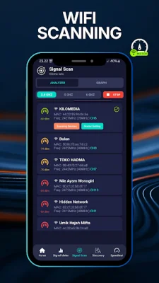 This app is designed to help you manage and optimize your WiFi network. With this app, you can easily scan nearby WiFi networks and view detailed information such as signal strength, channel, channel width, and frequency bands. This allows you to have a better understanding of your network and make informed decisions to improve its performance.