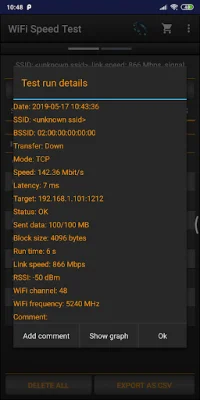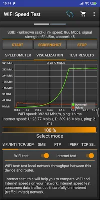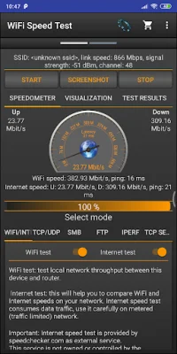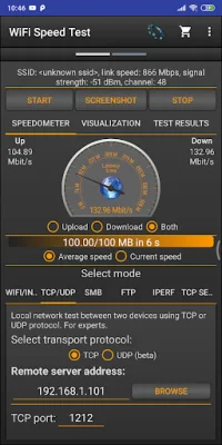 The main features of this application include the ability to test download and upload speeds, save past results automatically, and display important network information such as IP address, latency, signal strength, and channel information. Users can easily share their speed test results and test the speed of Windows shares and FTP servers. The test can be done via TCP or UDP, and tethering and hotspot support is also available for convenience.