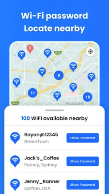 WiFi Unlocker is a convenient and reliable app that helps you find and connect to nearby Wi-Fi networks effortlessly. With its WiFi Map Password feature, you can easily locate nearby Wi-Fi connections on a map and access their details. This app also offers a password generator tool that allows you to create strong and secure passwords with customizable options. This ensures that your network is protected from any unauthorized access.