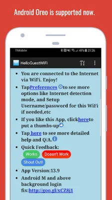 Another useful feature of HelloGuestWiFi is its ability to store multiple network credentials. This means that users can save login information for multiple networks and easily switch between them without having to re-enter their details. The app also offers support for the latest Android 14 OS, ensuring that users can enjoy a smooth and reliable experience.